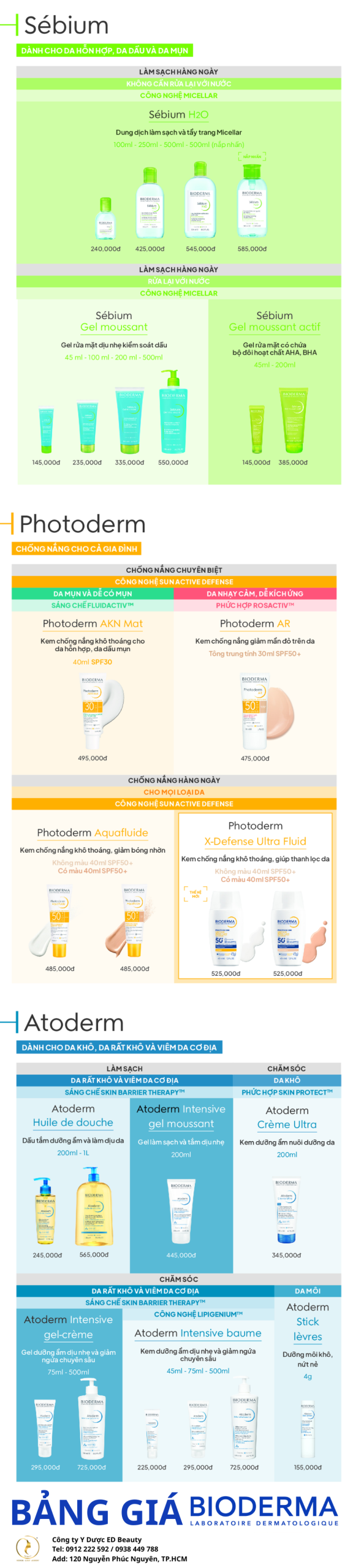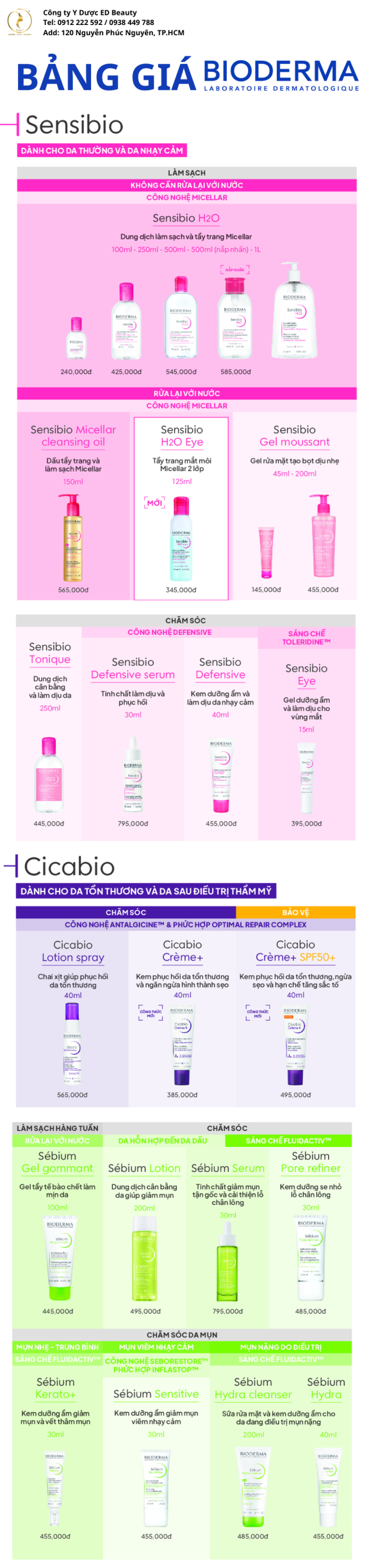 Nhằm giúp khách hàng dễ dàng tra cứu và lựa chọn sản phẩm phù hợp, Ed Beauty cập nhật bảng giá Bioderma chính hãng mới nhất tại Việt Nam ngay trong bài viết này.