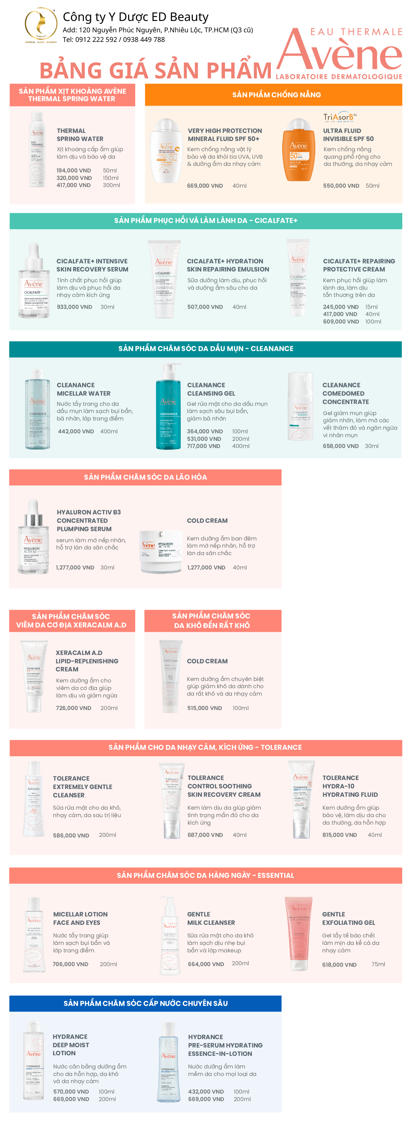 Thấu hiểu nhu cầu sử dụng mỹ phẩm Eau Thermale Avène, ED Beauty thông báo bảng giá dược mỹ phẩm Avène mới nhất ngay sau đây: