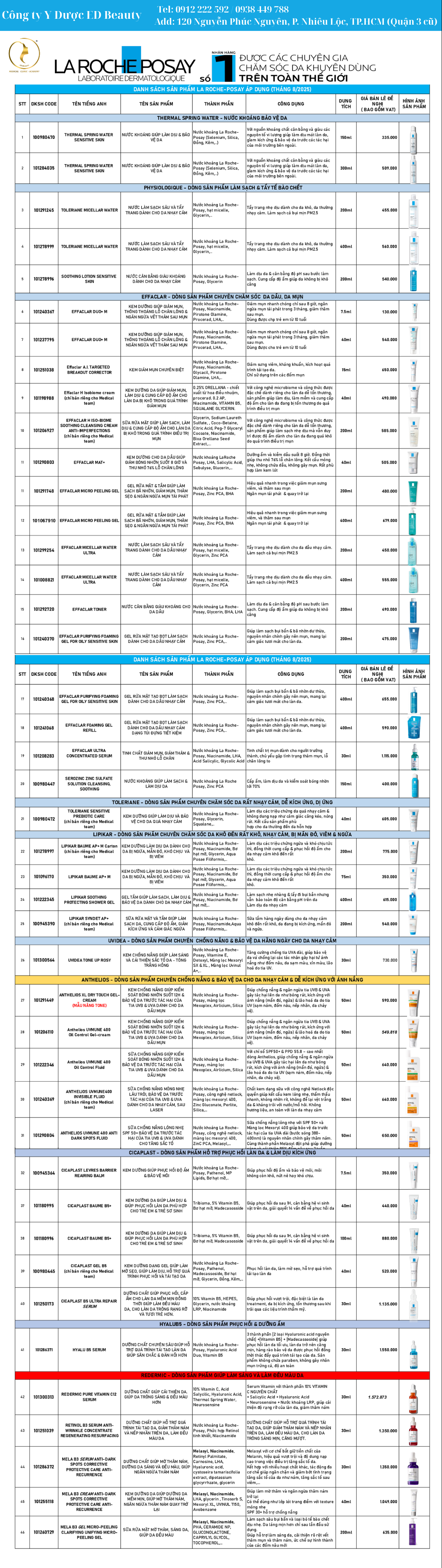 Bảng giá Mỹ phẩm La Roche-Posay chính hãng