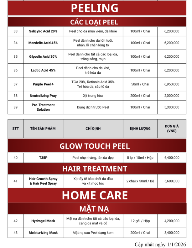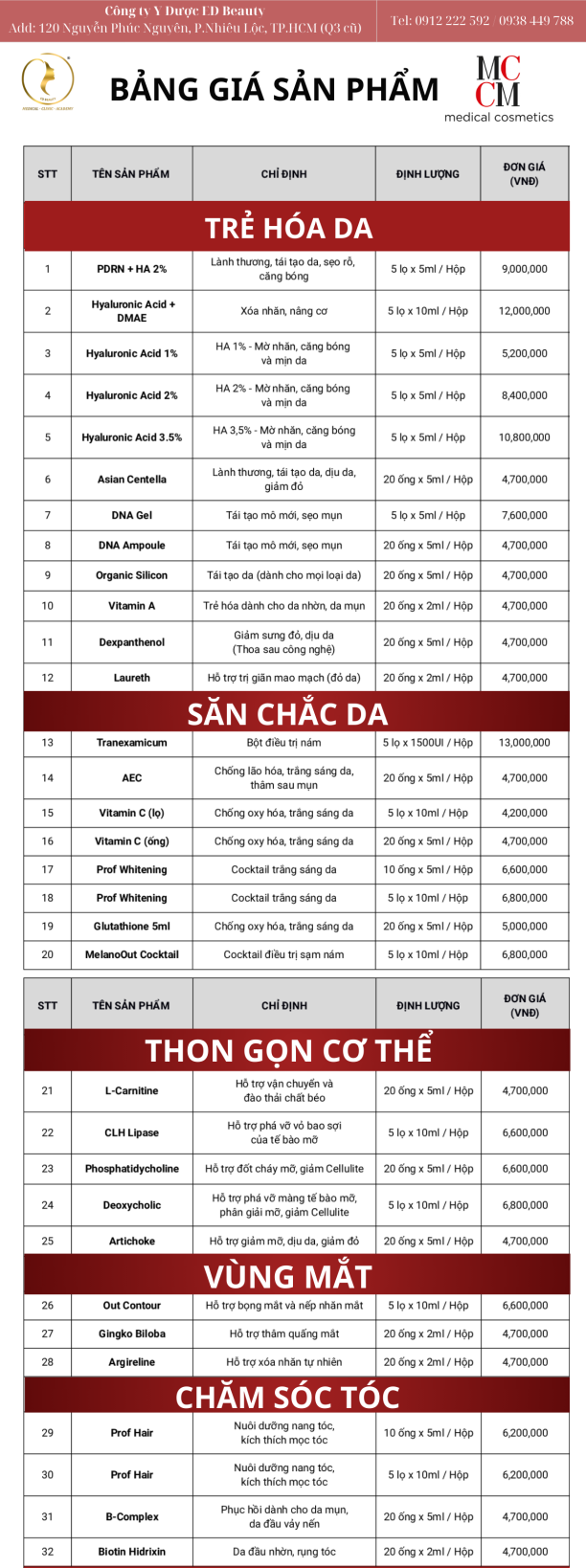 ED Beauty cung cấp thông tin bảng giá niêm yết dược mỹ phẩm MCCM ngay sau đây:
