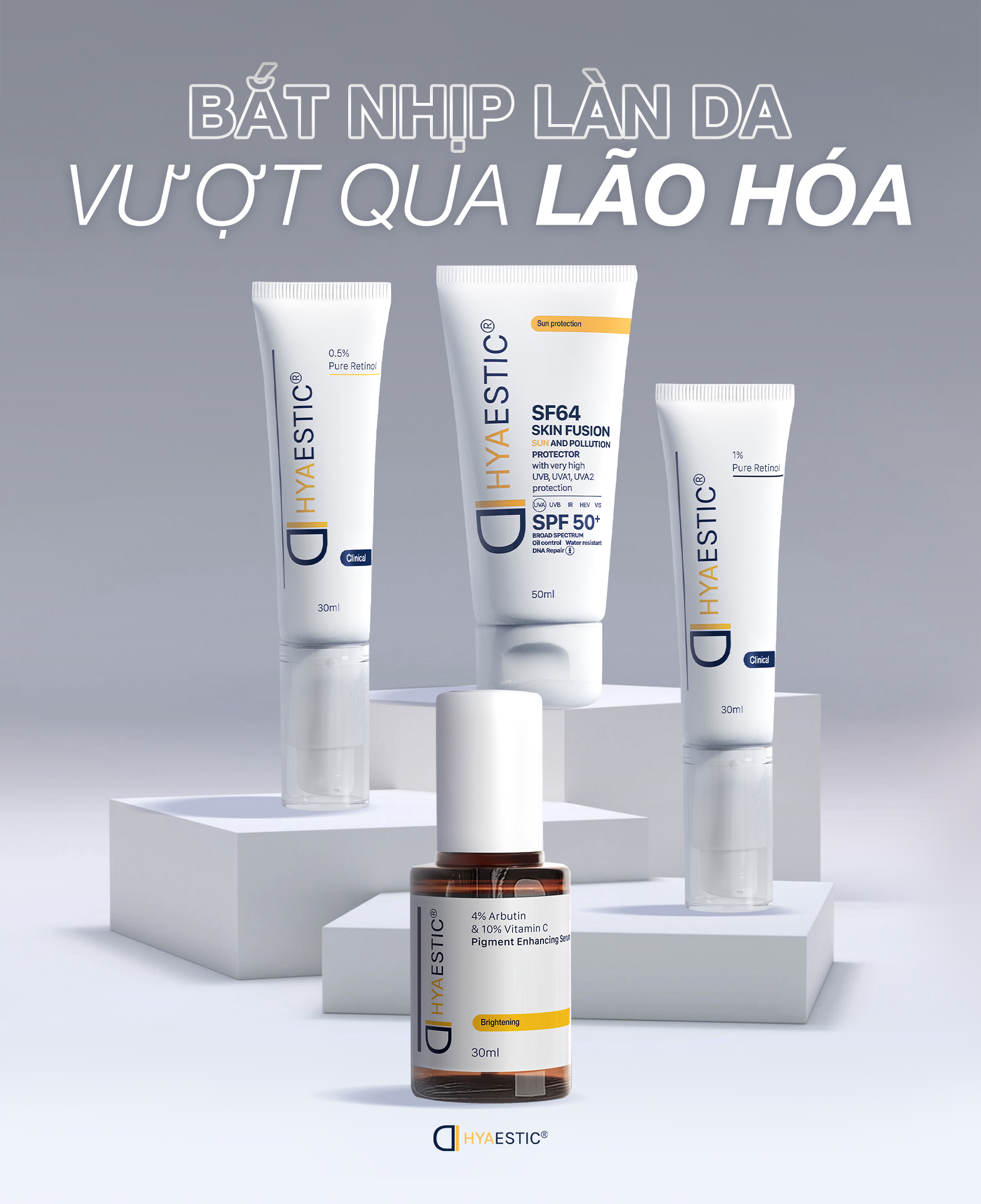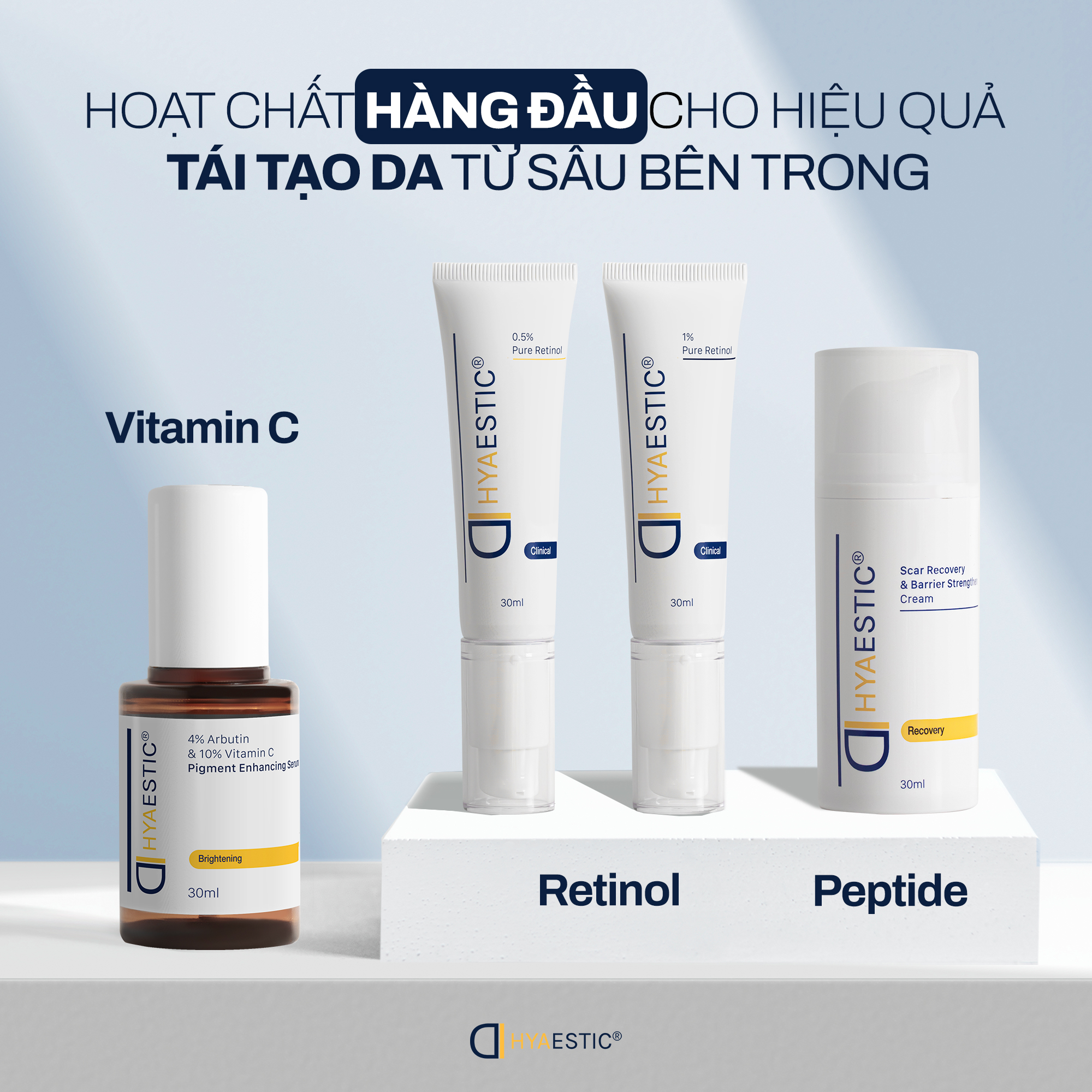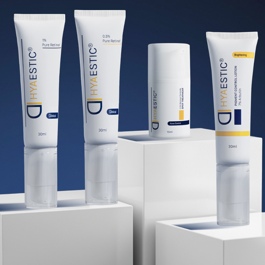 Điểm nổi bật của Hyaestic nằm ở việc sử dụng nồng độ hoạt chất cao và tinh khiết như Retinol, Arbutin, Vitamin C, mang lại hiệu quả rõ rệt trong việc phục hồi – cải thiện – trẻ hóa da.