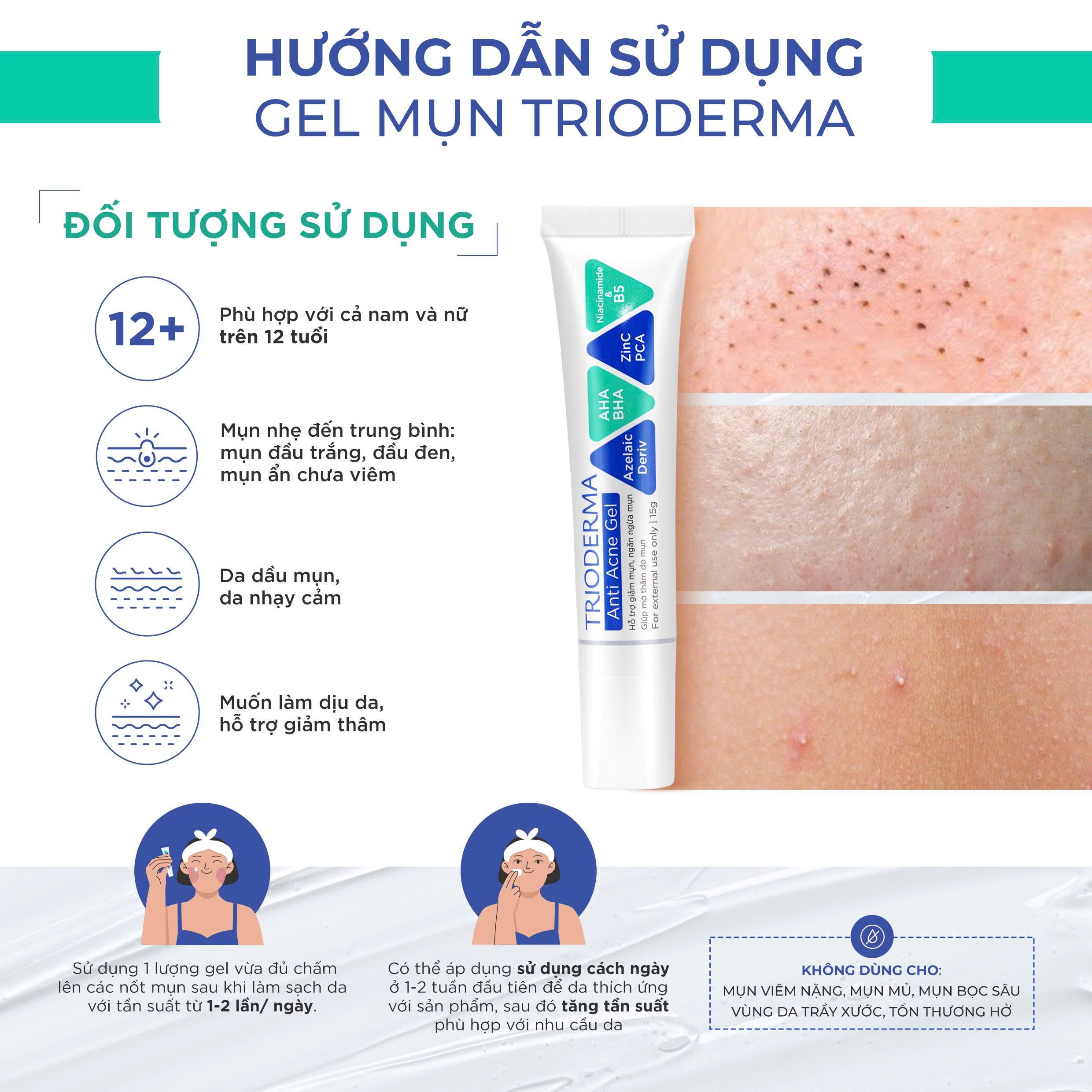 Mụn li ti kèm thâm: dùng Trioderma Anti Acne Gel