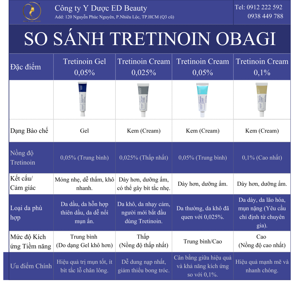 - Có thể gây khô, bong nhẹ giai đoạn đầu (retinization)