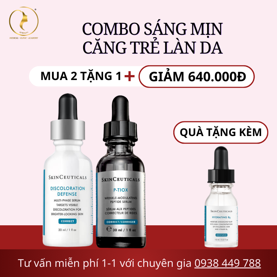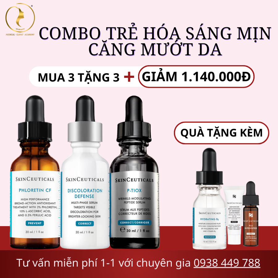 Gồm: 1 Discoloration Defense + 1 Phloretin CF (hoặc C E Ferulic) + 1 P-TIOX
