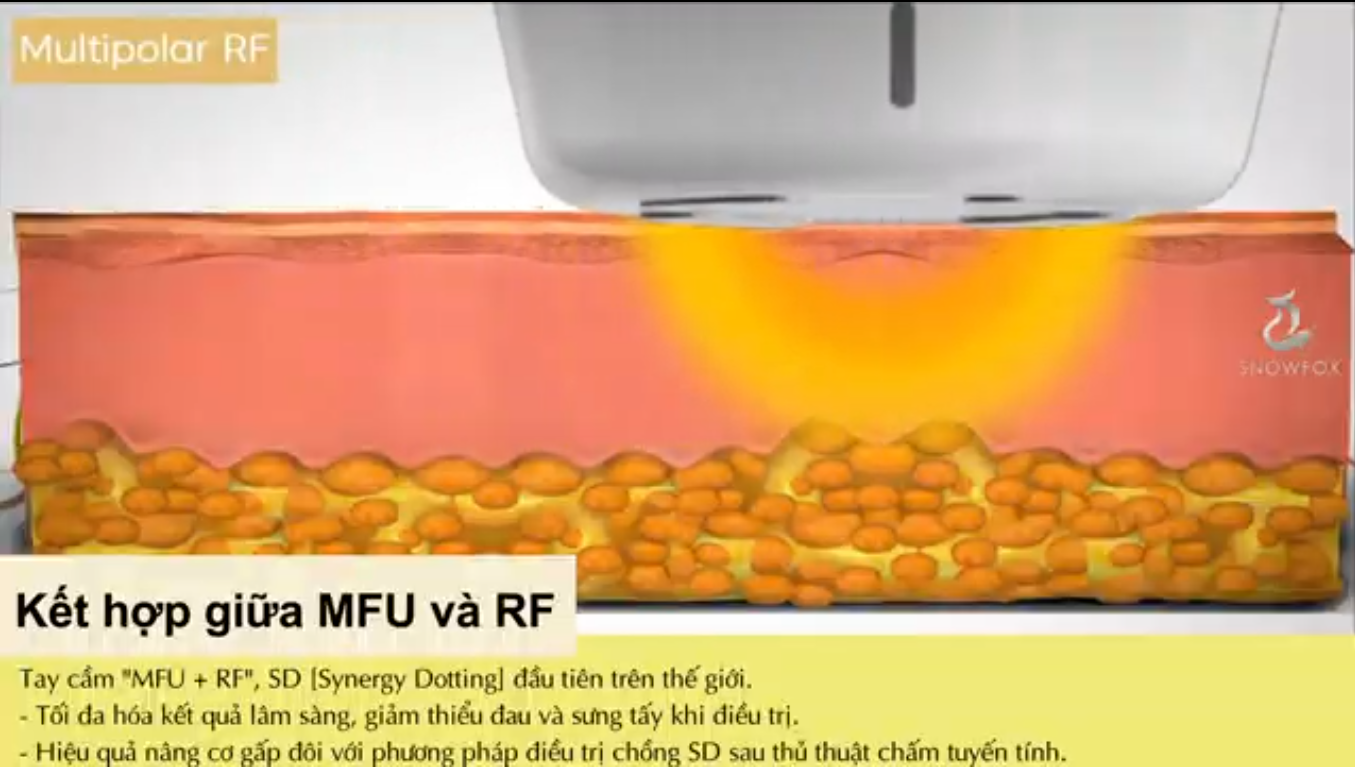 Công nghệ này kết hợp đồng thời MFU (Micro-Focused Ultrasound) và RF (Radio Frequency) trong cùng một liệu trình, giúp tác động đa tầng – vừa nâng cơ sâu vừa săn chắc bề mặt, mang lại hiệu quả trẻ hóa toàn diện và trải nghiệm nhẹ nhàng, không đau.