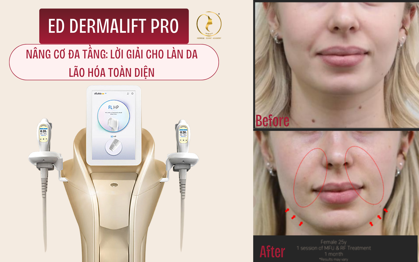 ED DermaLift Pro là giải pháp nâng cơ không phẫu thuật thế hệ mới, ứng dụng nguyên lý sóng kép MFU + RF để xóa nhăn, nâng cơ và trẻ hóa không cần nghỉ dưỡng.