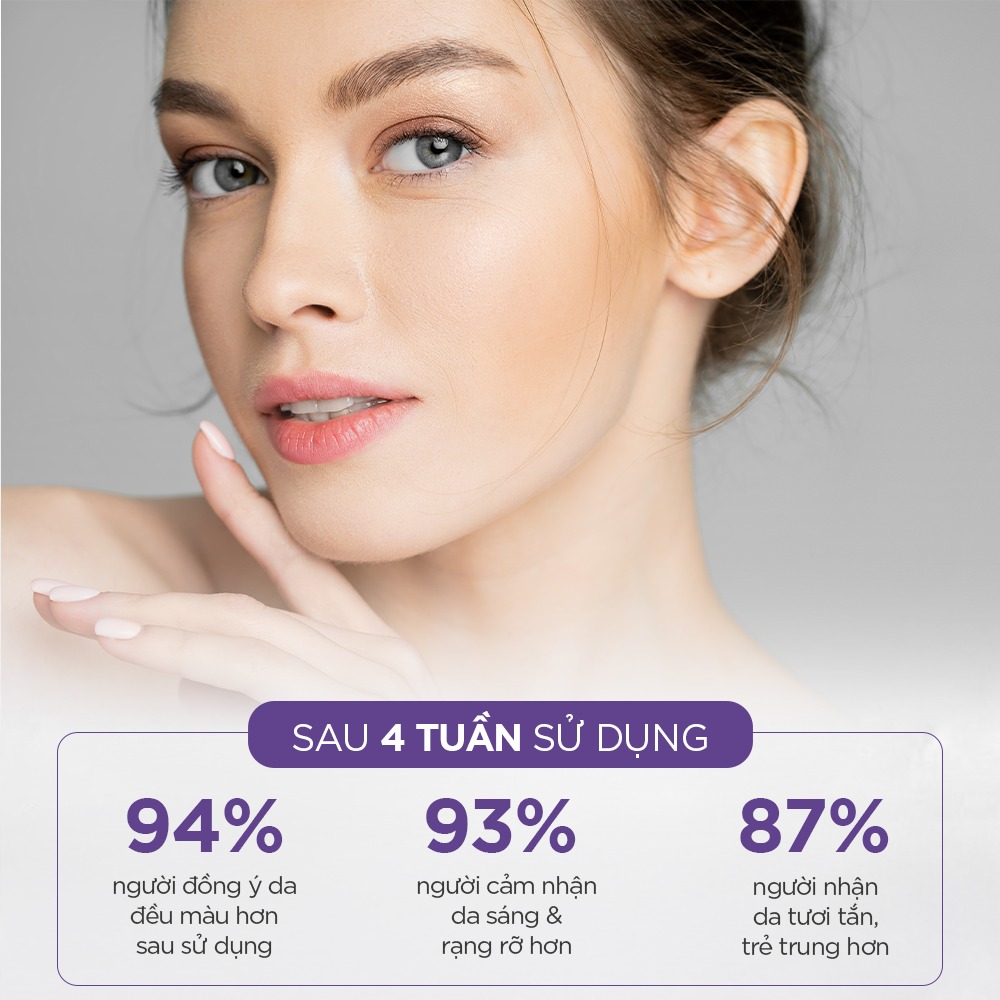 - 94% cảm nhận da rạng rỡ rõ rệt