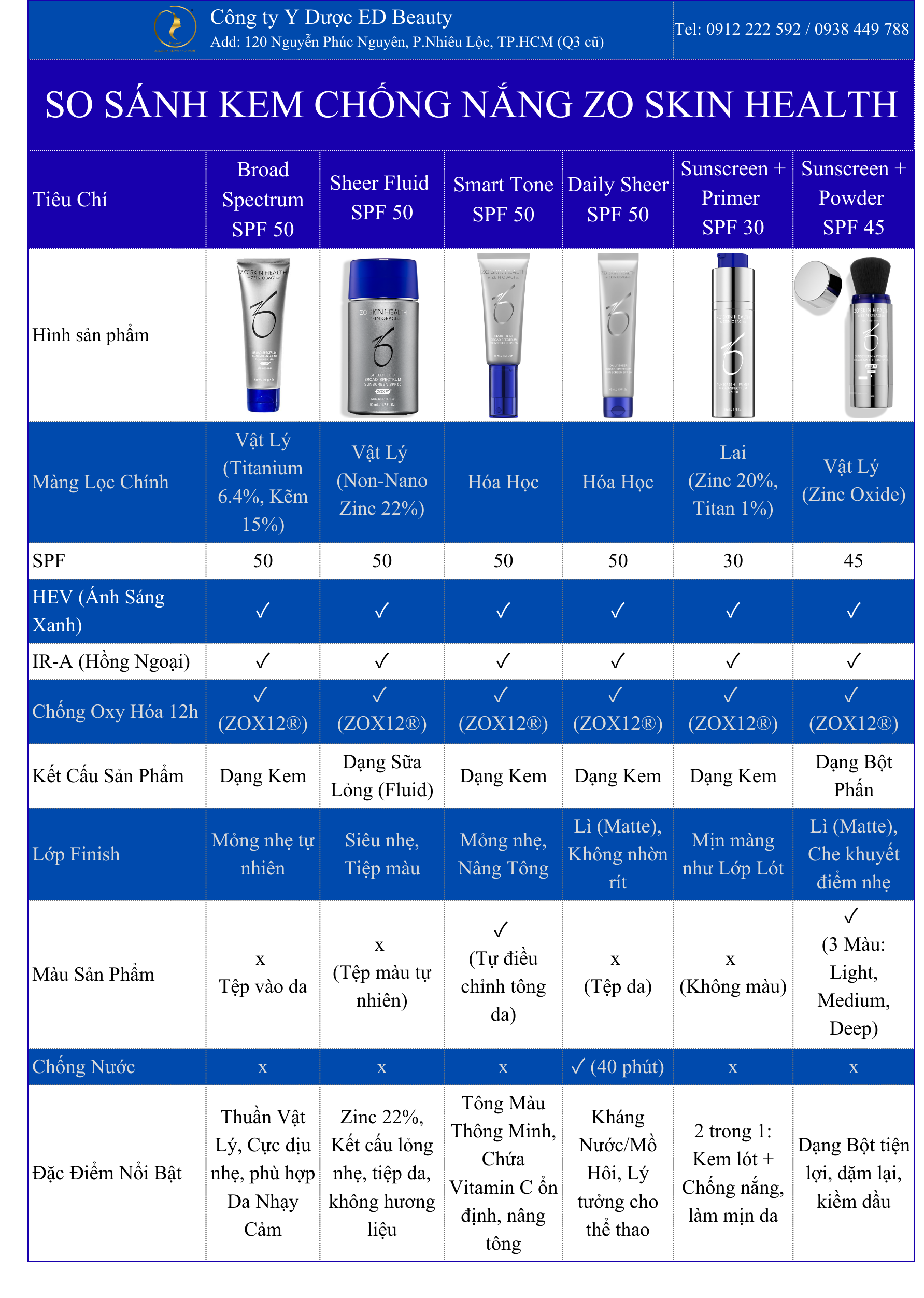 Dòng chống nắng của ZO luôn nổi tiếng nhờ công nghệ bảo vệ da toàn diện, kết cấu đa dạng và khả năng phù hợp cho nhiều loại da từ nhạy cảm, dầu mụn đến da đang treatment. Ed Beauty sẽ chia sẻ chi tiết và dễ hiểu nhất để bạn chọn đúng sản phẩm phù hợp.