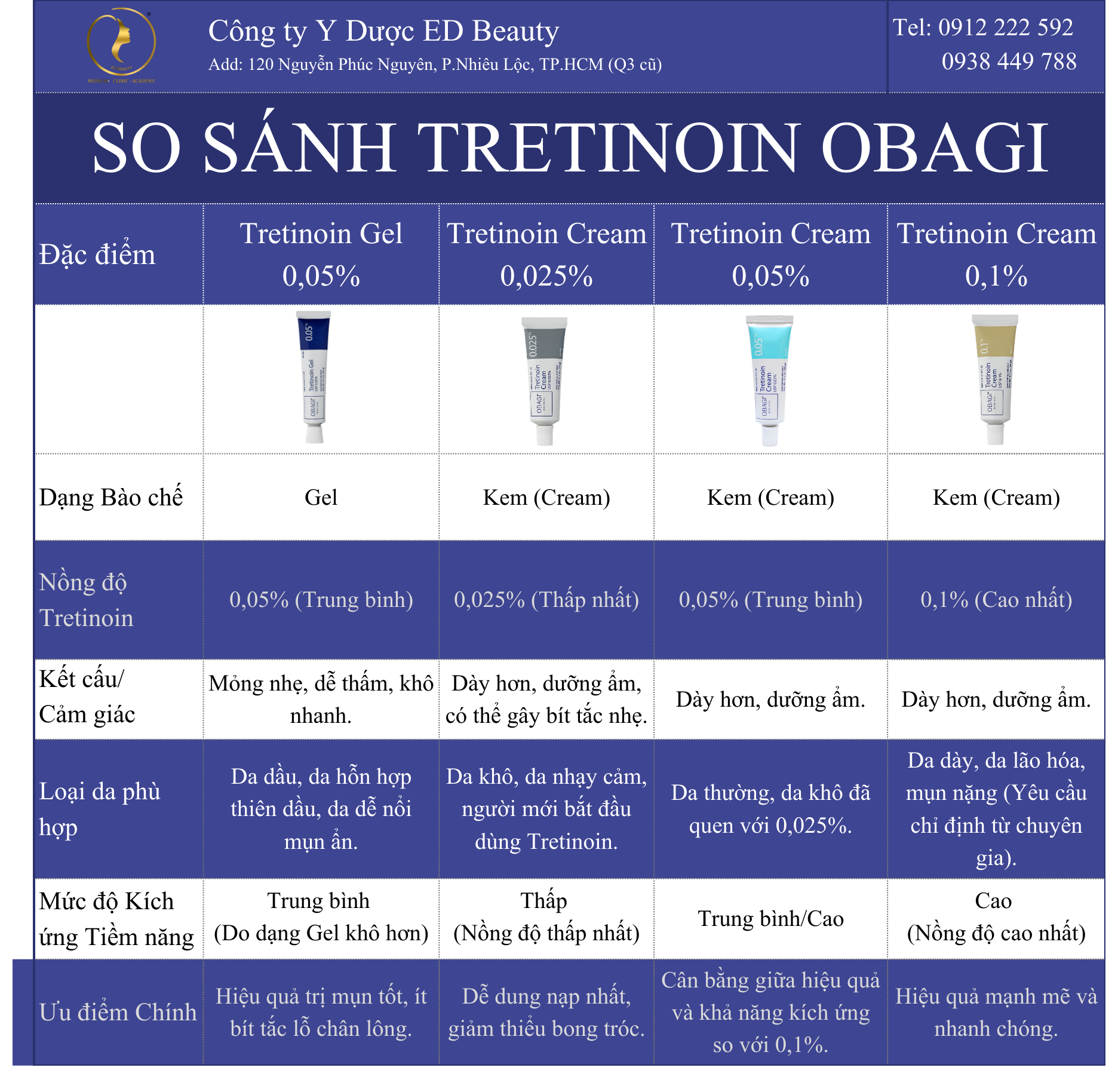 Nhờ đó, Tretinoin Obagi thường được bác sĩ da liễu lựa chọn trong các phác đồ điều trị mụn, lão hóa và rối loạn sắc tố.