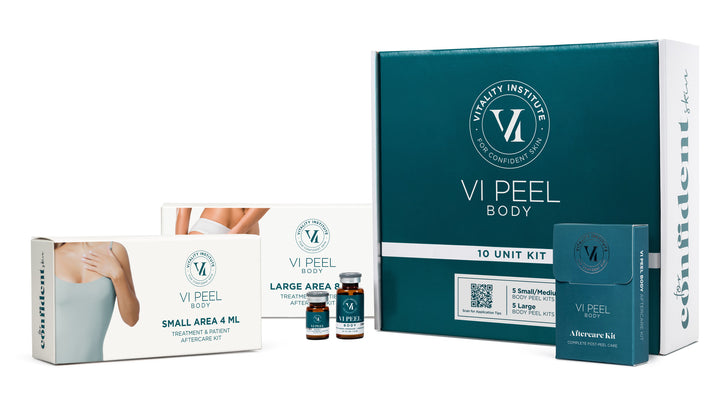Bạn đã sẵn sàng tạm biệt những vết thâm, nếp nhăn, mụn và vết rạn trên cơ thể chưa? Hãy để VI Peel Body, công thức thay da hóa học dành riêng cho cơ thể bạn. Với sự pha trộn độc đáo của các acids như AHA và TCAs, VI Peel Body an toàn và không gây đau đớn, không xâm lấn, dễ sử dụng và an toàn cho tất cả các bộ phận trên cơ thể.