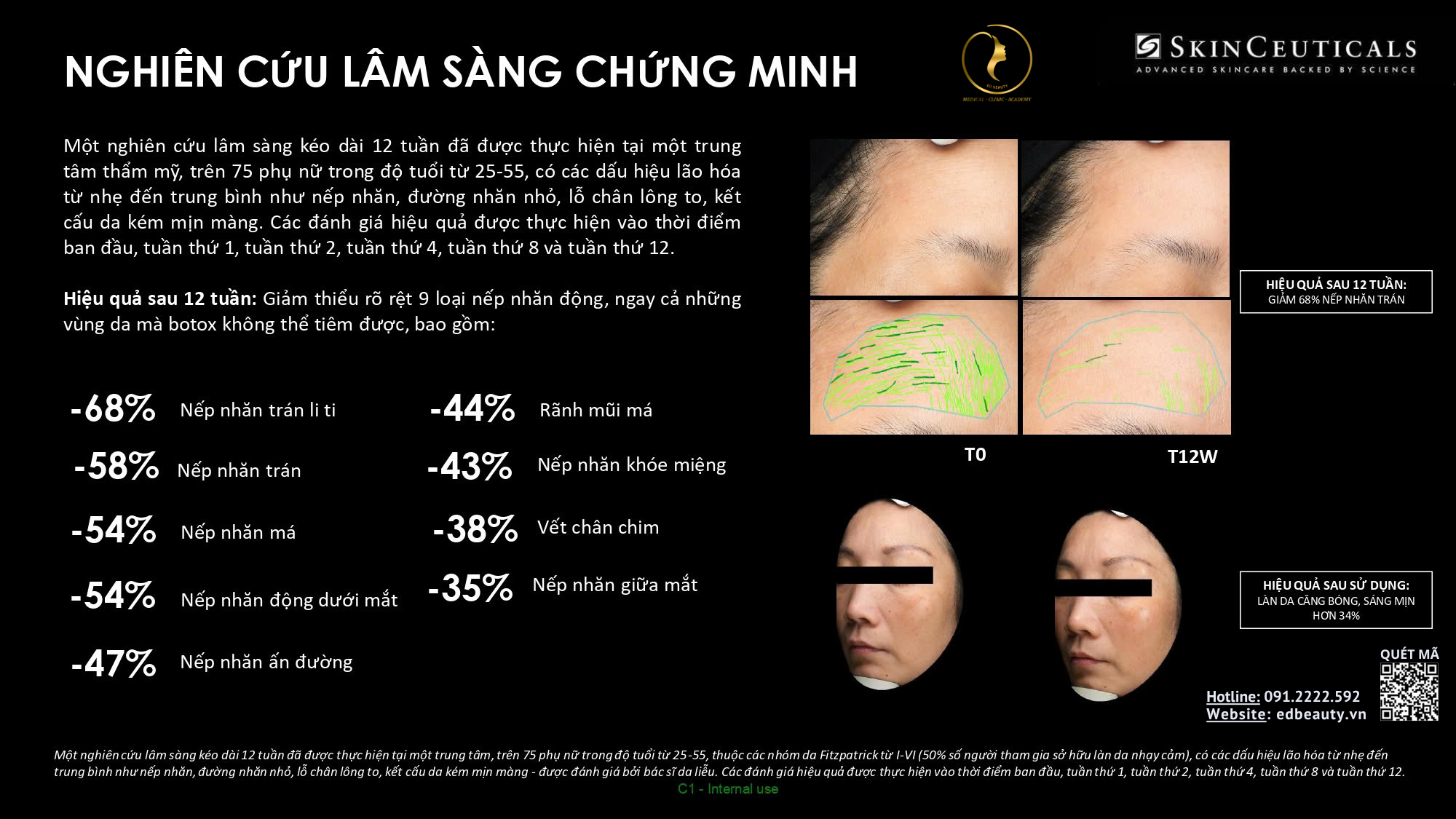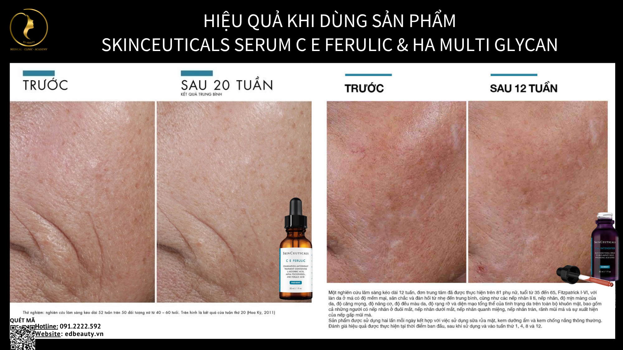 Sau tuổi 30, làn da bắt đầu xuất hiện các dấu hiệu lão hóa rõ rệt như khô ráp, xỉn màu và nếp nhăn li ti. Routine trẻ hóa chuyên sâu từ Skinceuticals được chuyên gia Ed Beauty thiết kế với sự kết hợp của C E Ferulic, P-Tiox, Hydrating B5, HA Intensifier và kem chống nắng Hyestic SPF 50, giúp vừa chống oxy hóa mạnh mẽ, vừa cấp ẩm đa tầng và cải thiện nếp nhăn.
