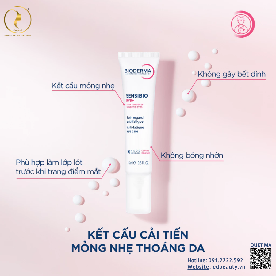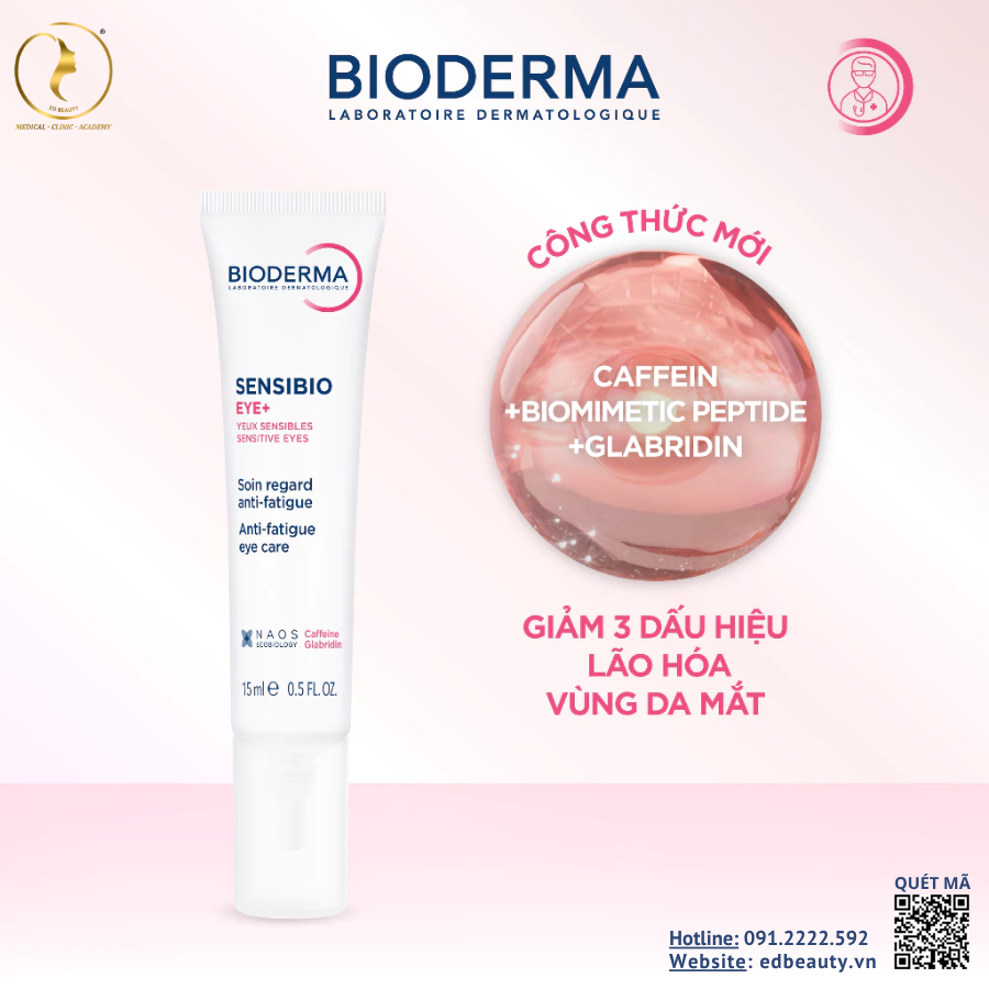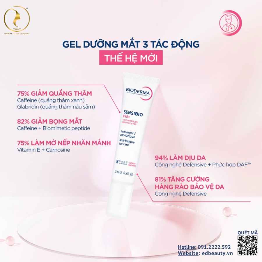 Bioderma Sensibio Eye+ là dòng gel dưỡng mắt thế hệ mới giúp giải quyết đồng thời 3 vấn đề: giảm quầng thâm – giảm bọng mắt – làm mờ nếp nhăn mảnh, đồng thời làm dịu và bảo vệ vùng da mắt nhạy cảm.