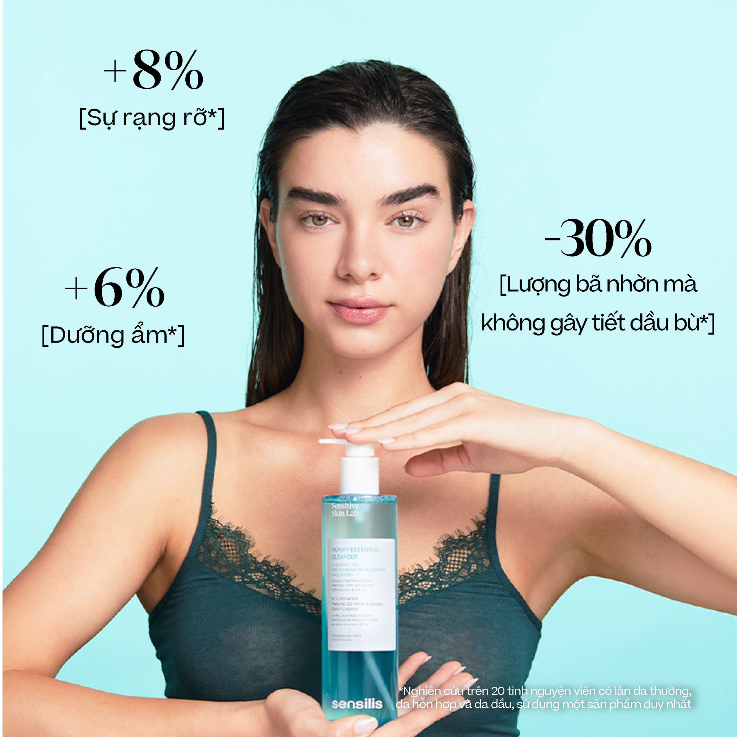 Gel rửa mặt Sensilis Purify Essential Cleanser là sản phẩm làm sạch dạng gel giúp loại bỏ hiệu quả bụi bẩn, dầu thừa và tạp chất tích tụ trong lỗ chân lông, đồng thời kiểm soát bã nhờn mà không gây hiện tượng tiết dầu bù.