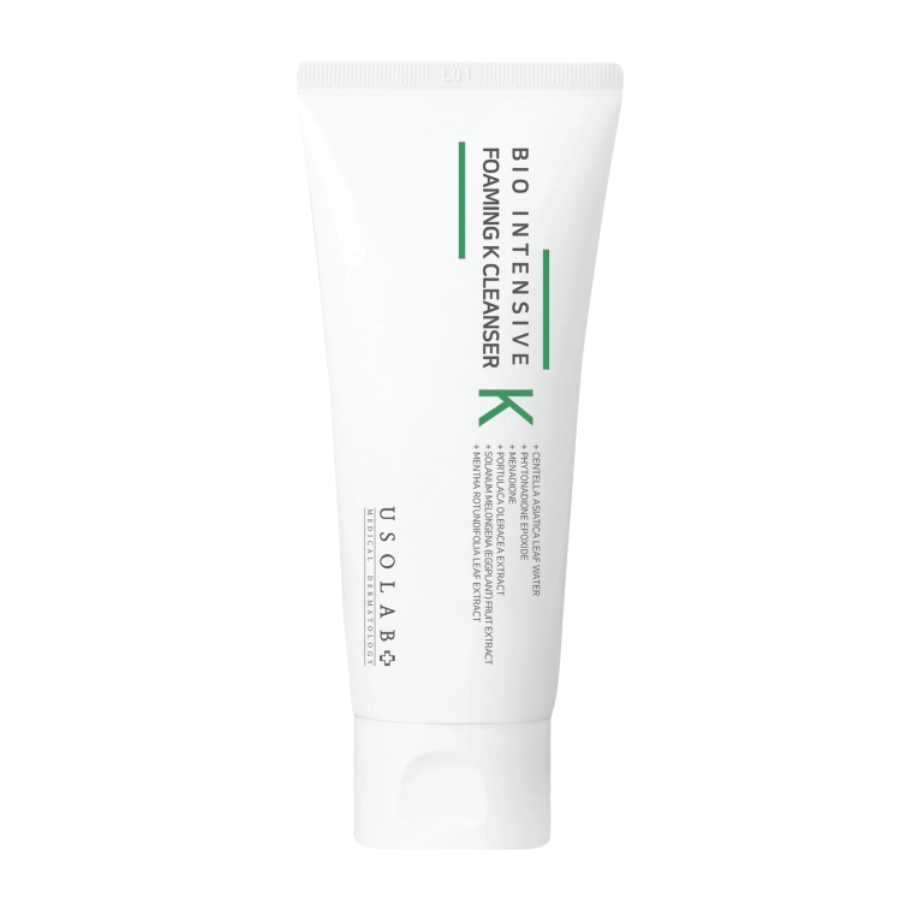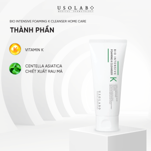 Gel rửa mặt dịu nhẹ Usolab Bio Intensive Foaming K Cleanser là sản phẩm làm sạch sâu dành cho da nhạy cảm, da đỏ và da dễ kích ứng. Sản phẩm giúp loại bỏ dầu thừa, bụi bẩn và cặn trang điểm mà không gây khô căng, đồng thời hỗ trợ phục hồi hàng rào da, làm dịu mẩn đỏ và giảm kích ứng nhờ vitamin K kết hợp chiết xuất rau má.