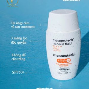 Mesoprotech® Mineral Fluid SPF50+ là kem chống nắng khoáng chất thế hệ mới của mesoestetic®, cung cấp bảo vệ quang học phổ rộng (broad-spectrum photoprotection) với SPF50+, đồng thời đạt độ dung nạp da tối đa (high dermal tolerance).