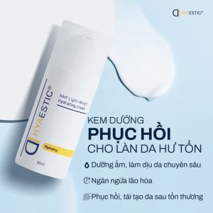 Hyaestic NMF Light-Weight Hydrating Cream là sản phẩm kem dưỡng phục hồi và cấp ẩm chuyên sâu, được phát triển bởi thương hiệu Hyaestic dành cho làn da hư tổn, khô, bong tróc hoặc đang treatment. Với kết cấu mỏng nhẹ, dễ thấm và không nhờn rít, kem giúp duy trì độ ẩm lên đến 72 giờ, phục hồi hàng rào bảo vệ da và mang lại cảm giác mềm mại, ẩm mượt, khỏe mạnh.