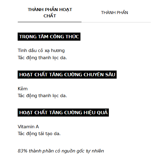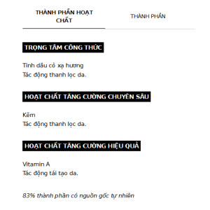 - Cỏ xạ hương: Tinh chất xạ hương trắng + Kẽm: kháng khuẩn, thải độc