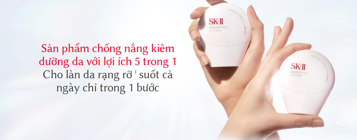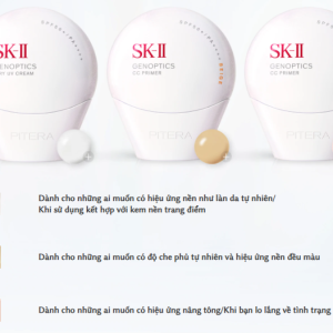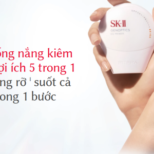 Kem chống nắng SK-II GenOptics là dòng chống nắng thế hệ mới tích hợp dưỡng da toàn diện, kết hợp khả năng bảo vệ phổ rộng SPF50+ PA++++ với các hoạt chất làm sáng và cải thiện kết cấu da. Sản phẩm không chỉ giúp chống nắng hiệu quả mà còn hỗ trợ dưỡng ẩm, làm đều màu và tăng độ rạng rỡ cho làn da mỗi ngày. Có thể dùng làm kem lót khi trang điểm.