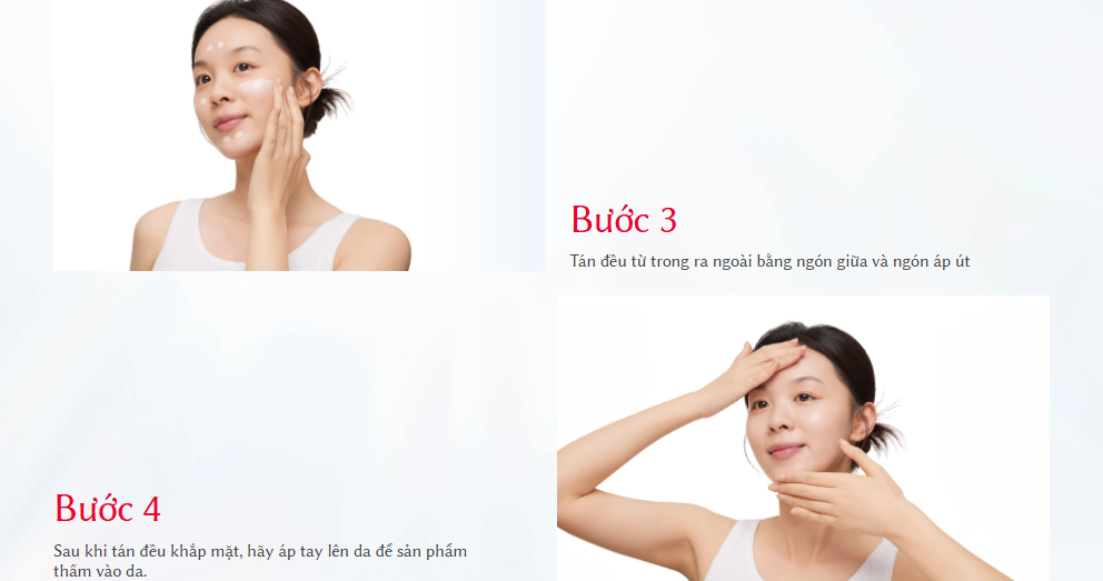 Lấy lượng vừa đủ, thoa đều lên toàn bộ khuôn mặt và vùng cổ.