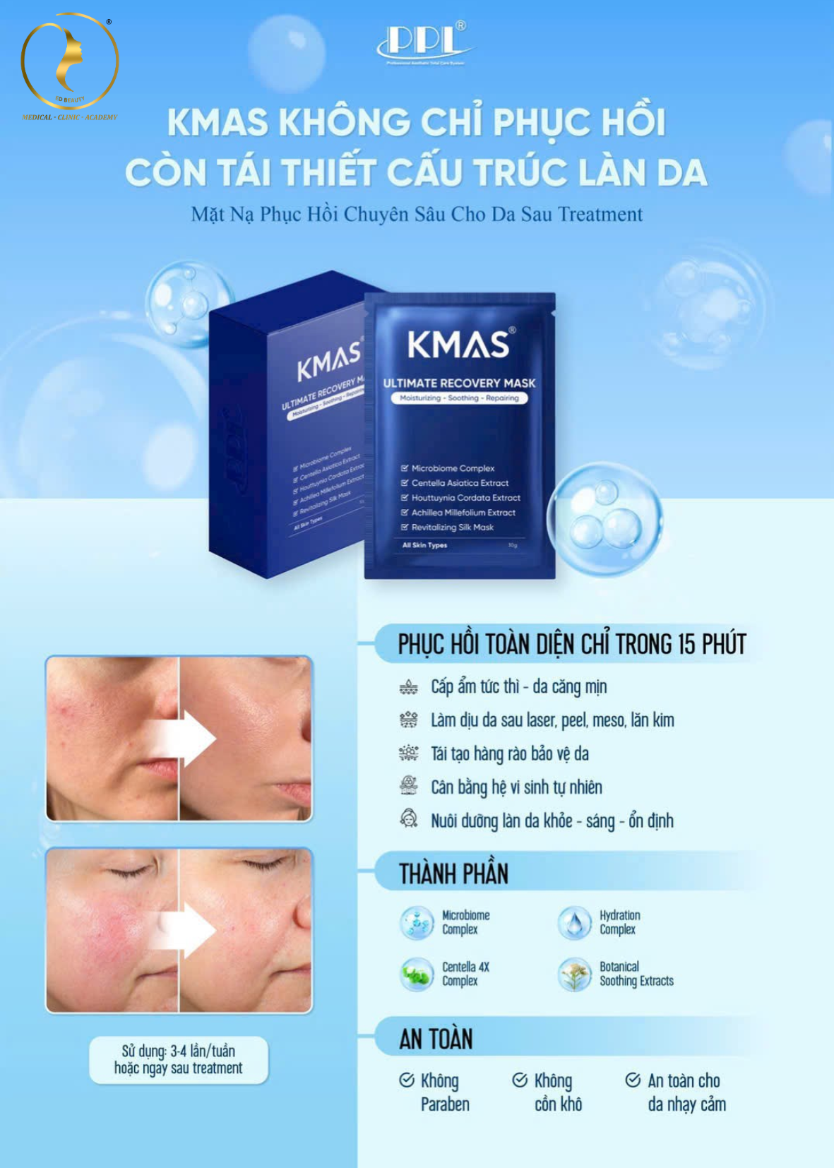 - Có thể sử dụng 2–3 lần/tuần hoặc theo chỉ định sau treatment.