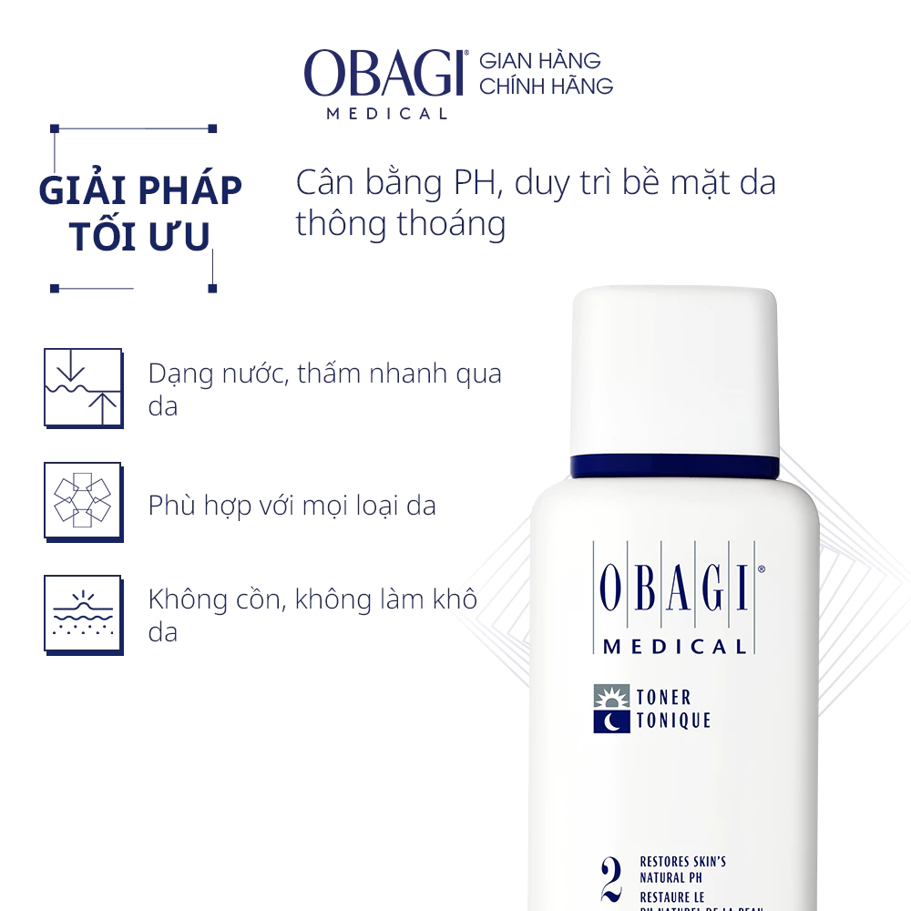 Nước hoa hồng làm sạch da Obagi Toner với thành phần giúp làm sạch da hiệu quả đồng thời thu hẹp lỗ chân lông cho bạn làn da mịn màng.