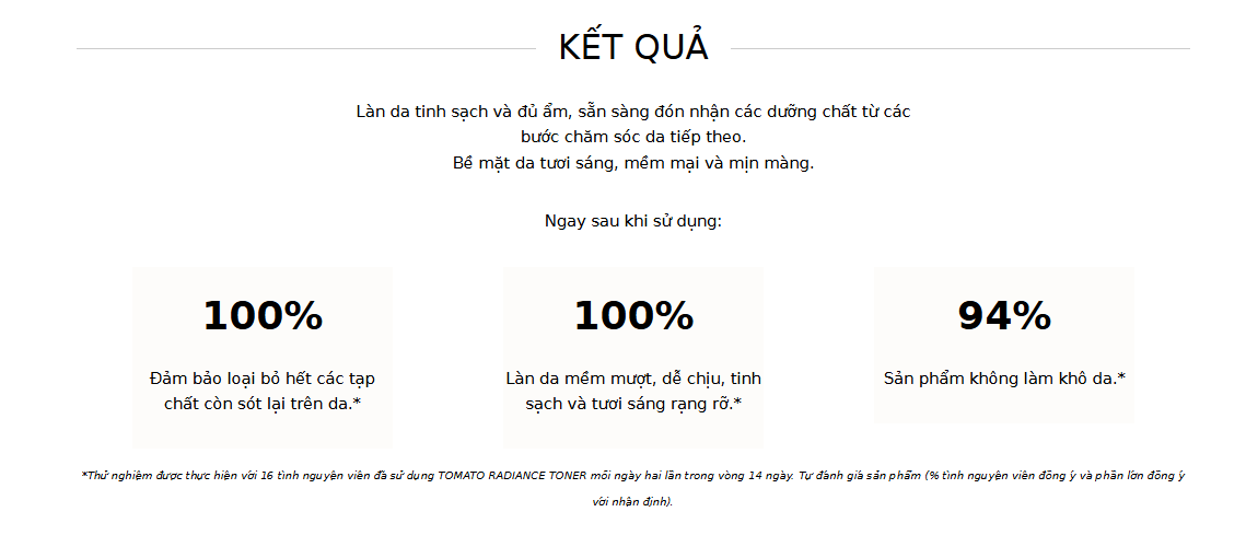Thành phần chính có trong Tomato Radiance Toner