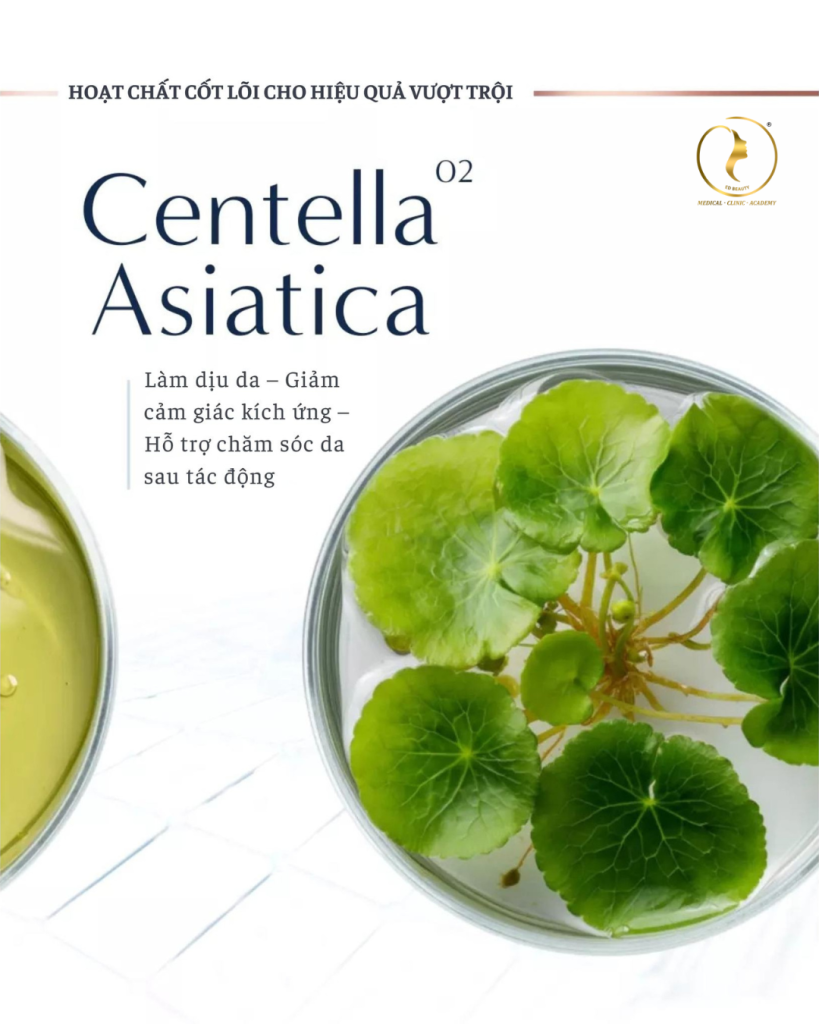 - Centella Asiatica (Rau má): Làm dịu, hỗ trợ phục hồi da và giảm viêm