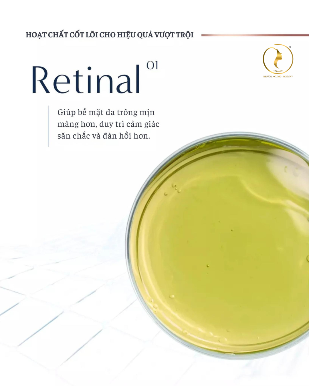 - Retinal (Retinaldehyde): Dẫn xuất Vitamin A mạnh mẽ, hỗ trợ thúc đẩy sản sinh collagen và elastin nhanh hơn Retinol thông thường