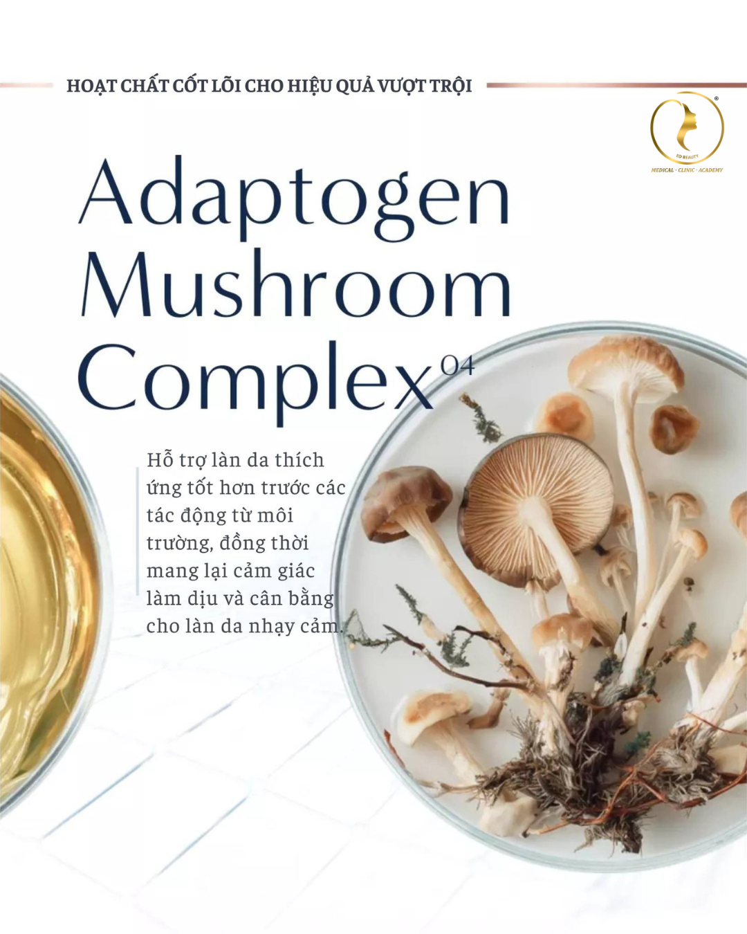 - Adaptogen Mushroom Complex & Ectoin: Tăng khả năng chống chịu của da trước tác nhân môi trường.