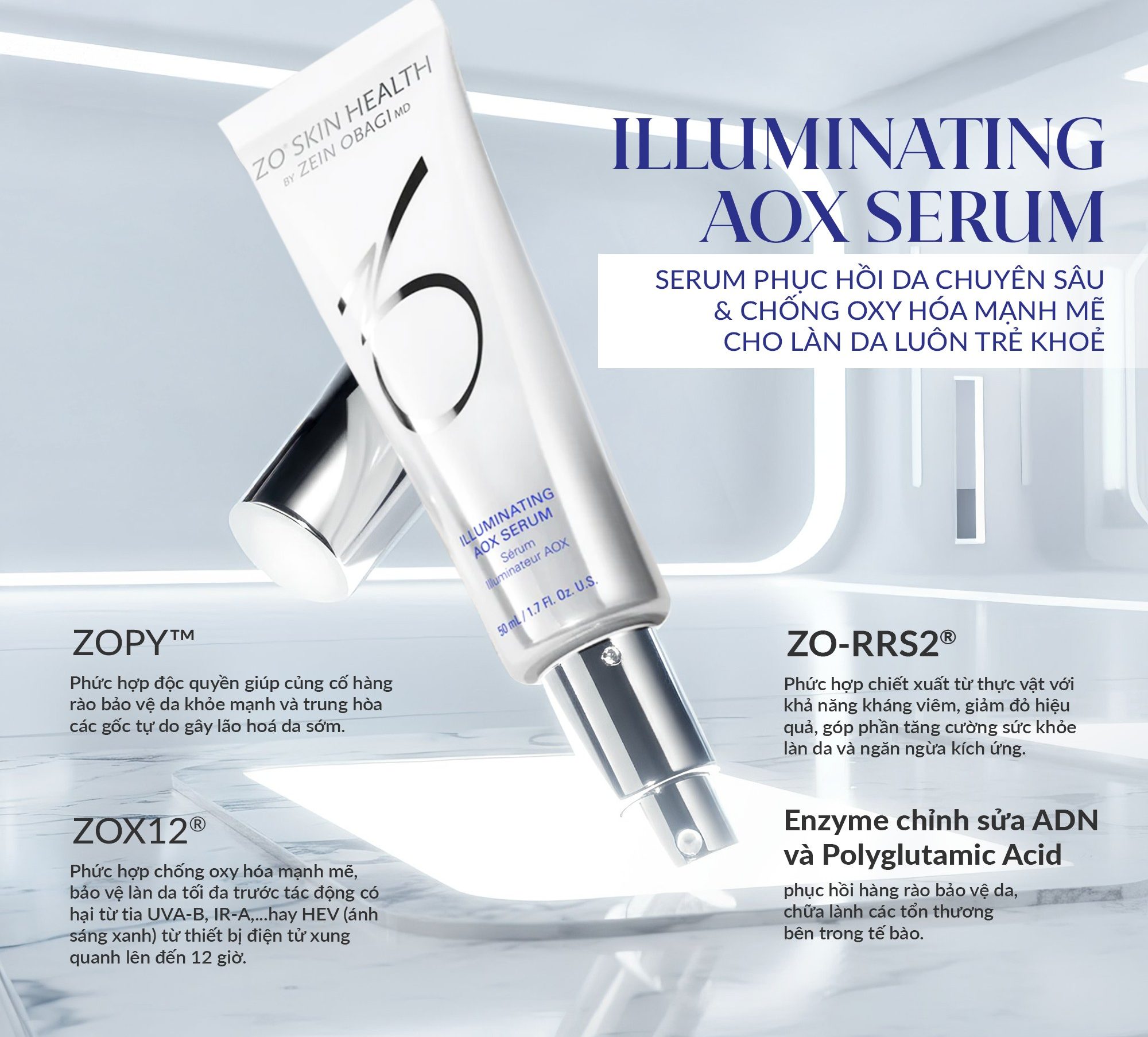- Zo Skin Health Illuminating AOX Serum thuộc dòng dược mỹ phẩm, bạn cần tham vấn ý kiến của bác sĩ hoặc chuyên viên trước khi sử dụng.