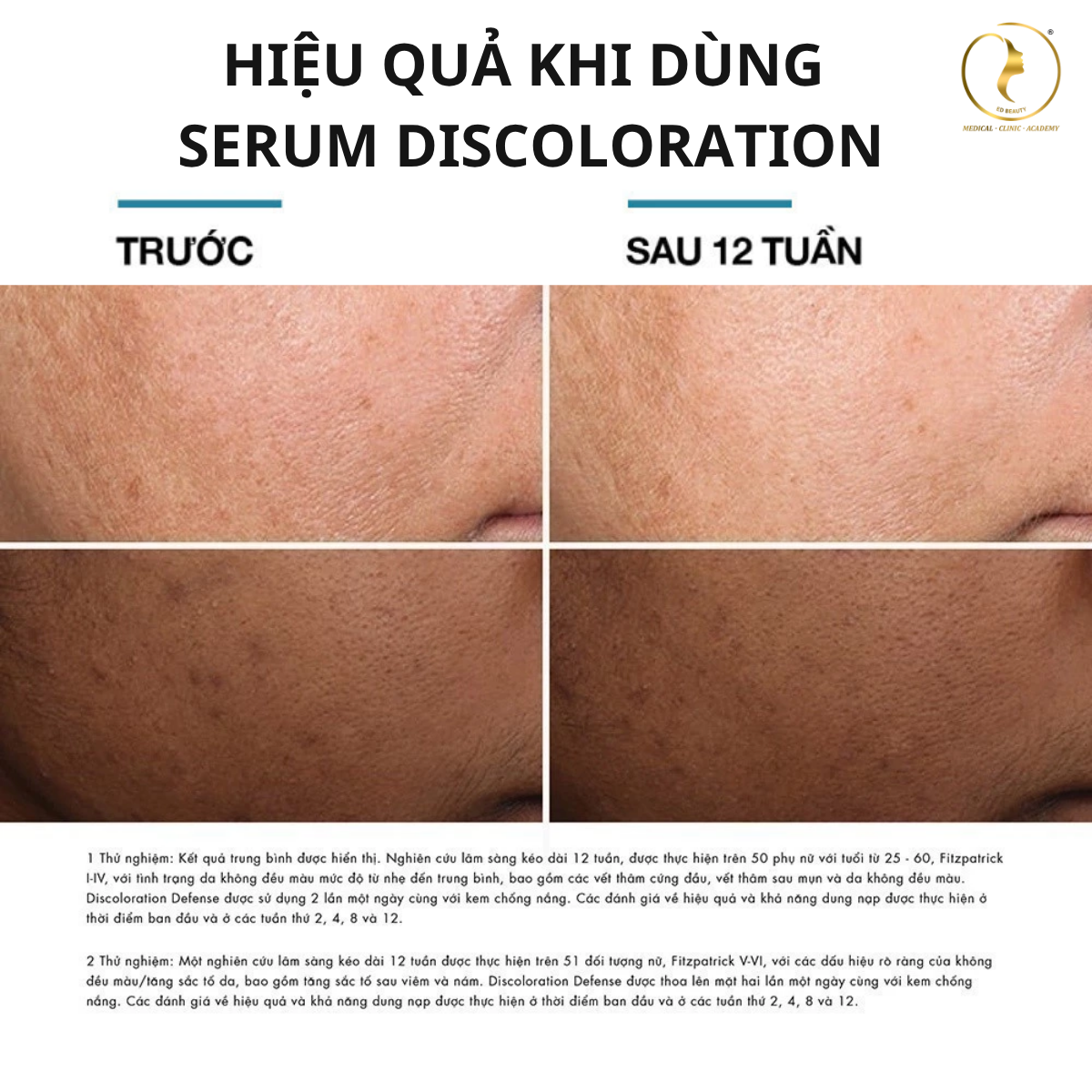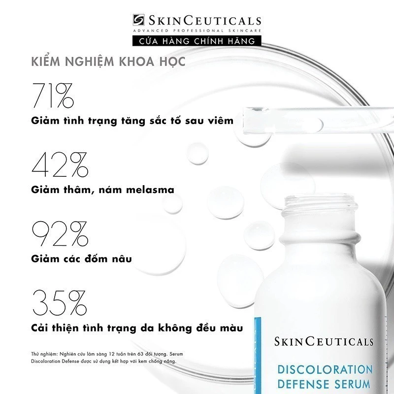 - Discoloration Defense hỗ trợ làm đều màu và giảm tình trạng đỏ do mao mạch