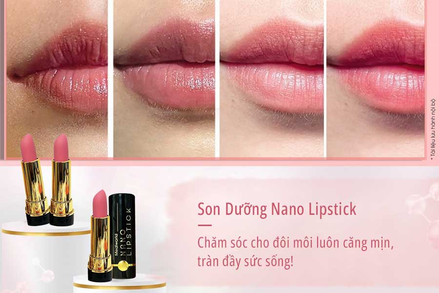 Nano Lipstick là sản phẩm son môi lì ứng dụng công nghệ Sinh học kết hợp công nghệ Nano, sử dụng thành phần sáp được nhập khẩu từ Mỹ, mùi hương từ quả đào, chất tạo màu tự nhiên cùng nhiều dưỡng chất an toàn đối với làn da của đôi môi.
