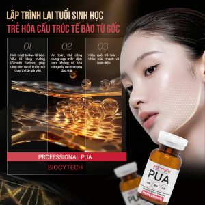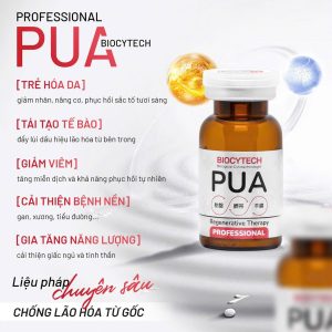 Professional PUA Biocytech được sử dụng trong liệu pháp y học tái tạo và thẩm mỹ chuyên nghiệp, giúp kích thích phân chia tế bào, phục hồi mô tổn thương, chống viêm và làm chậm quá trình lão hóa.