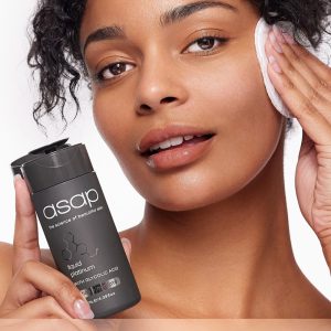 Thoa sản phẩm: đổ một lượng nhỏ Asap Liquid Platinum lên bông cotton và thoa đều lên mặt, cổ và vùng ngực (décolletage).