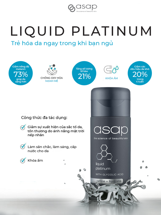Tinh chất AHA tái tạo da qua đêm, giữ ẩm và sáng mịn da Asap Liquid Platinum