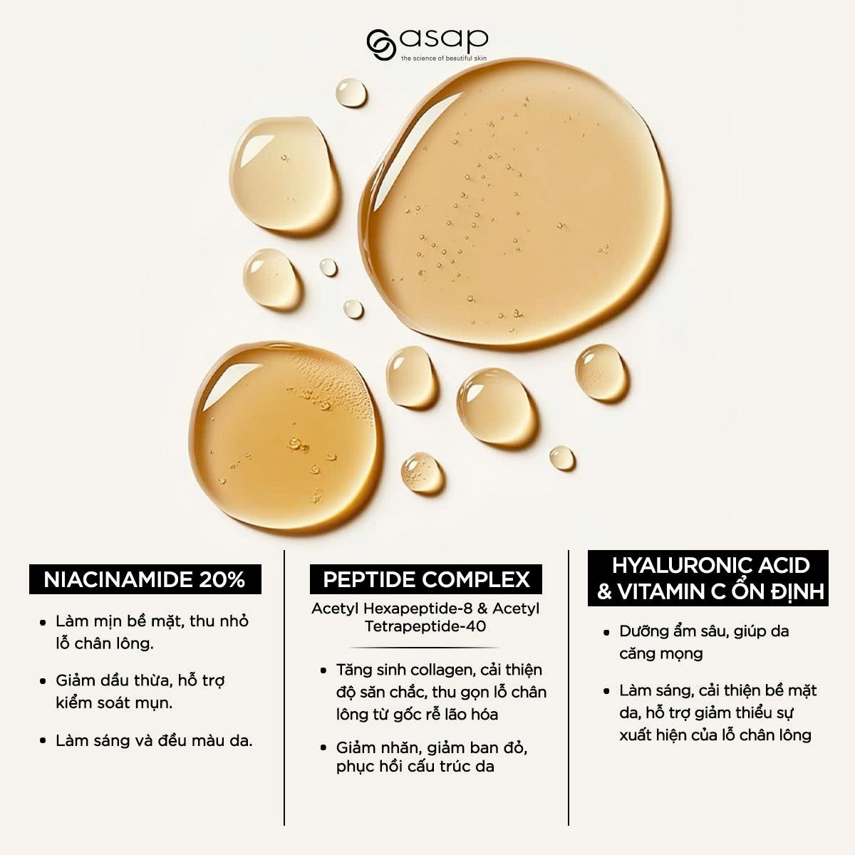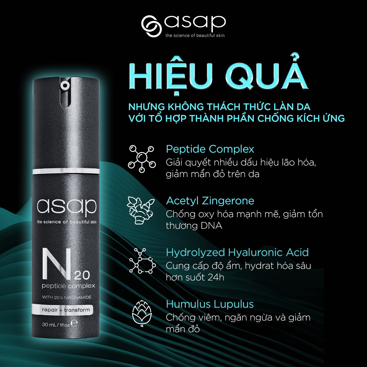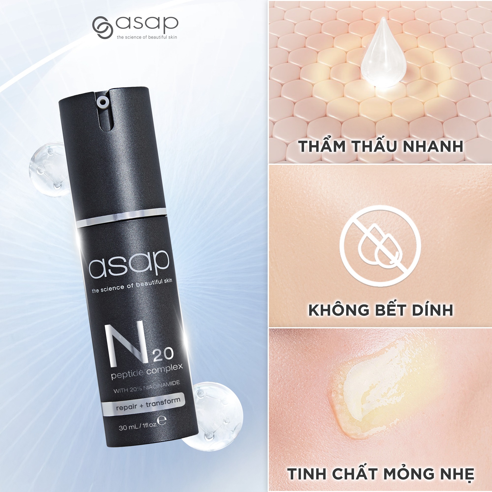 Tinh chất cải thiện lỗ chân lông, giảm lão hóa và làm sáng mịn da Asap N20 Peptide Complex
