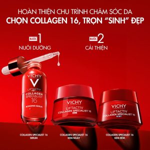 Vichy Liftactiv Collagen Specialist 16 Bonding Serum là tinh chất trẻ hóa thế hệ mới của Vichy, khả năng tăng sinh và liên kết 16 loại collagen, cải thiện đồng thời 16 dấu hiệu lão hóa trên da.
