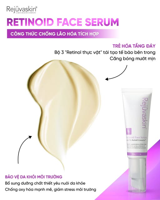 Rejuvaskin Face Serum Retinoid là dòng serum chống lão hóa chuyên sâu được phát triển dựa trên công nghệ độc quyền Tri-RetinX™ Complex, giúp phục hồi và tái tạo làn da bị lão hóa mà không gây kích ứng.