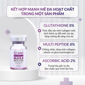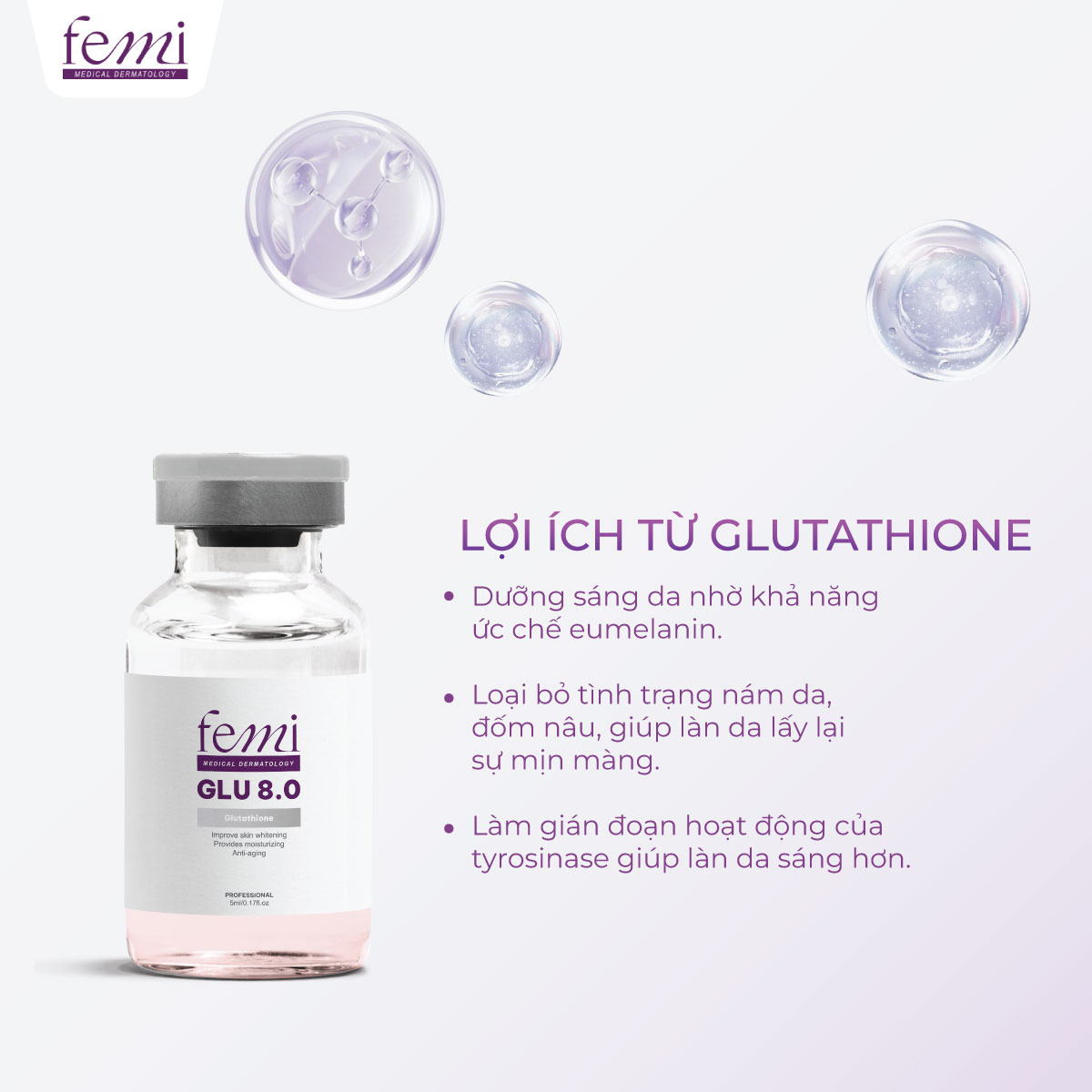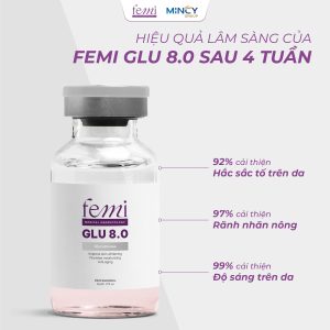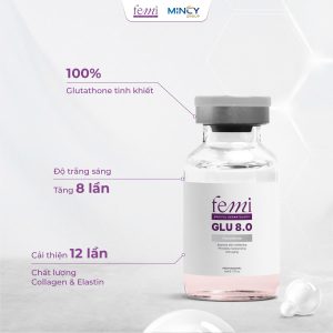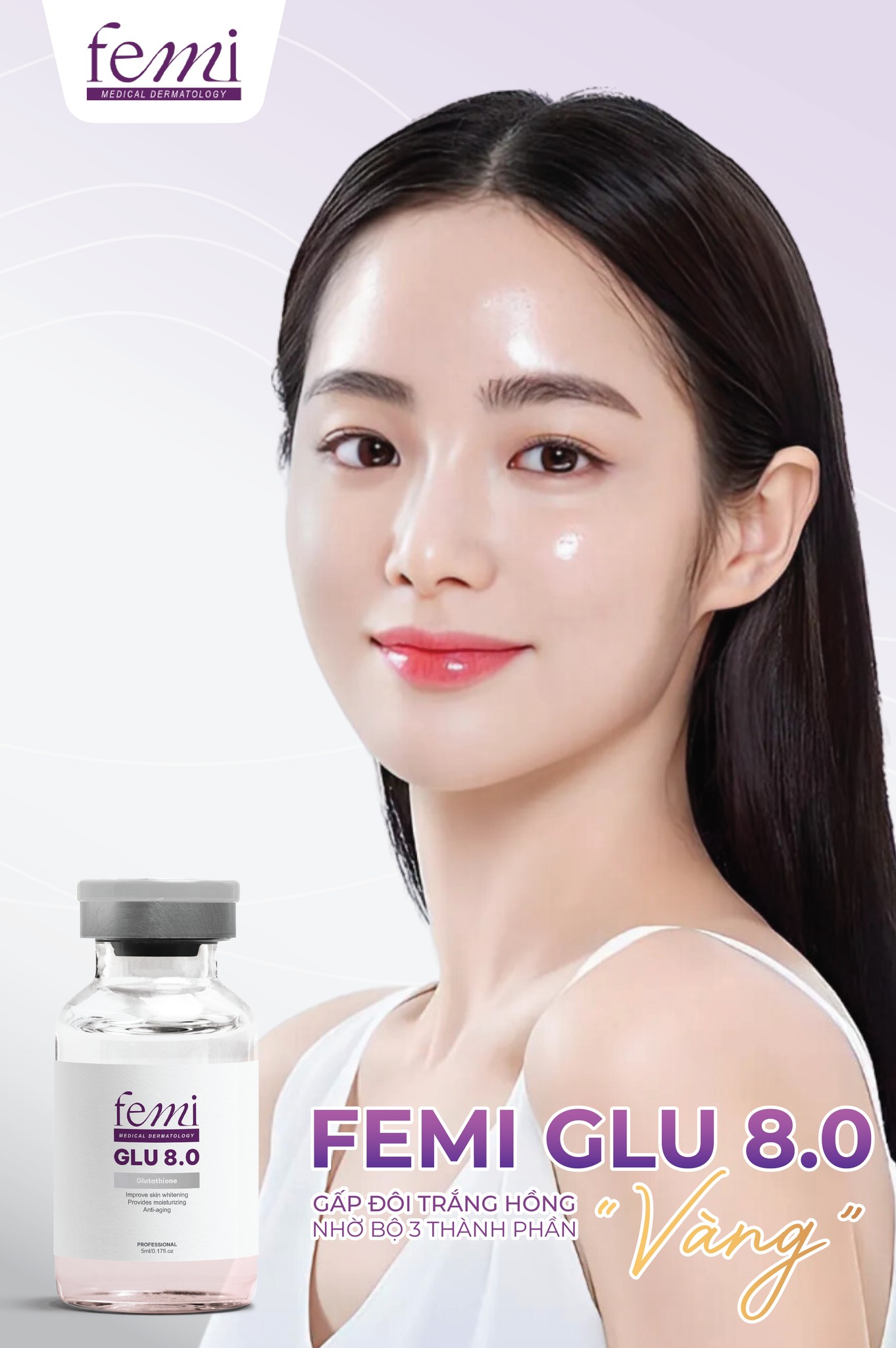 Femi Glu 8.0 là tinh chất dưỡng trắng hồng chuyên sâu được thiết kế dành riêng cho liệu pháp Mesotherapy. Sản phẩm tập trung vào hai mục tiêu chính: làm sáng da và chống lão hóa.