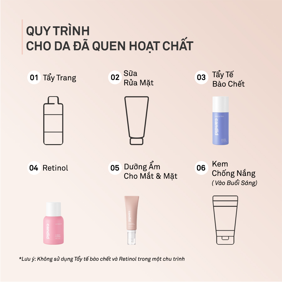 Lưu ý: Không nên dùng cùng các sản phẩm chứa AHA/BHA hoặc Vitamin C ở cùng thời điểm để tránh kích ứng.