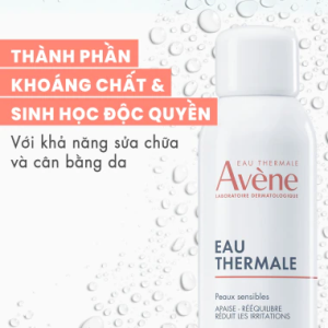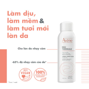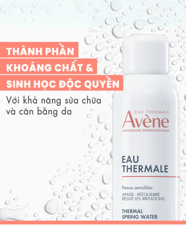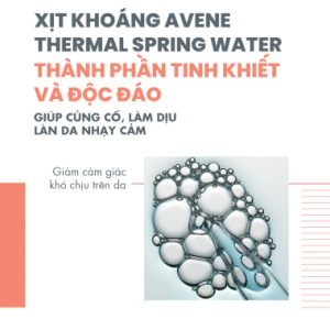 Avene Thermal Spring Water làm dịu, làm mềm, và khôi phục sự cân bằng tự nhiên của da. Hơn 300 nghiên cứu sinh học, dược lý và lâm sàng nghiêm ngặt đã chứng minh rõ ràng da-chữa bệnh và lợi ích nhẹ nhàng của mùa xuân Avene nhiệt nước. Thậm chí vượt ra ngoài điều trị làn da nhạy cảm, liệu pháp này đã được sử dụng trong nhiều thế kỷ tại Trung tâm thủy liệu pháp để giải quyết một loạt các điều kiện về da nghiêm trọng hơn như viêm da dị ứng, bệnh vẩy nến, ichthyosis và bỏng.