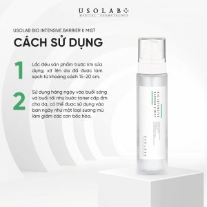 Ngoài ra, Usolab Bio Intensive Barrier K Mist có thể dùng sau khi peel, lăn kim hoặc trước/sau trang điểm để làm dịu và bảo vệ da.