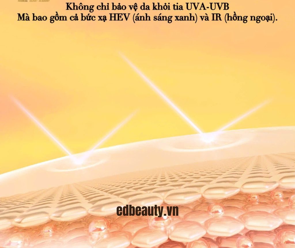 Sản phẩm không chỉ bảo vệ da trước tia UV mà còn tập trung vào khả năng hỗ trợ duy trì độ săn chắc và đàn hồi nhờ hệ thống chống oxy hóa và thành phần củng cố cấu trúc da.