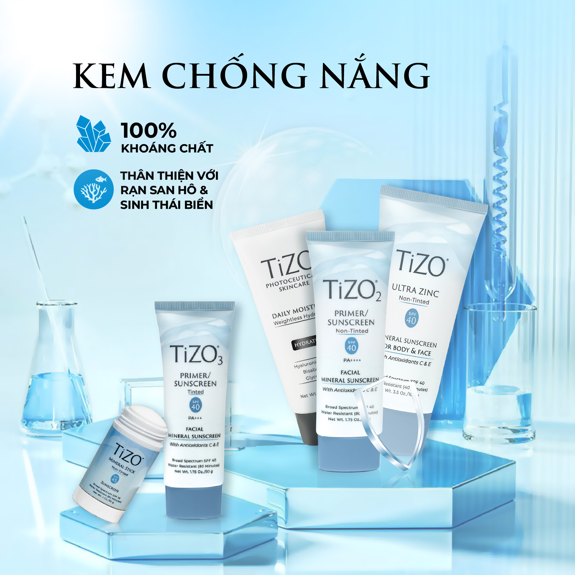 Điểm đặc biệt của các sản phẩm này là không chứa bộ lọc chống nắng hóa học gây tranh cãi đối với hệ sinh thái biển. Bên cạnh khả năng bảo vệ da trước tia UV, kết cấu của kem chống nắng TIZO còn giúp tạo lớp nền mịn nhẹ trên da, phù hợp để sử dụng hằng ngày hoặc khi đi biển.